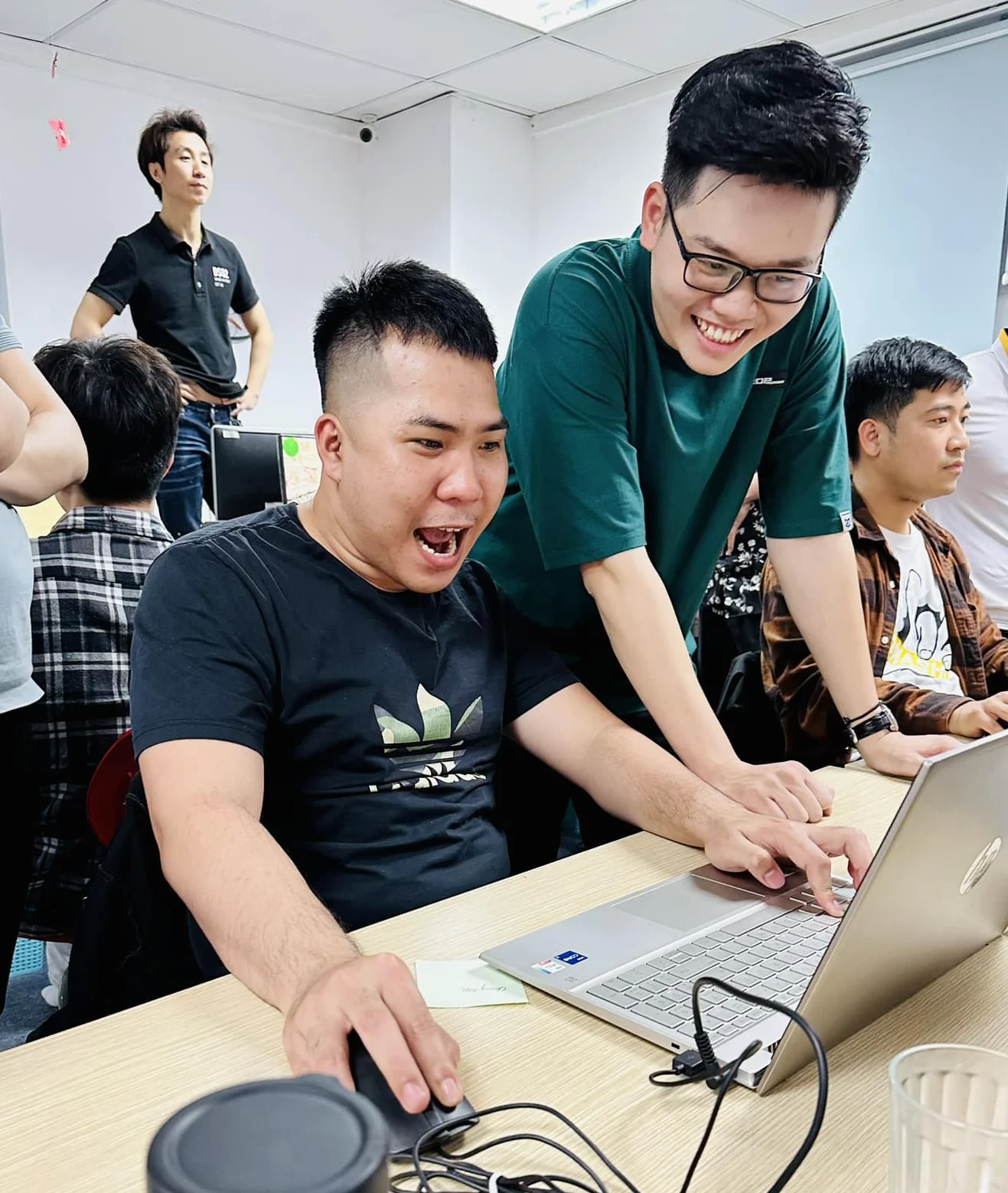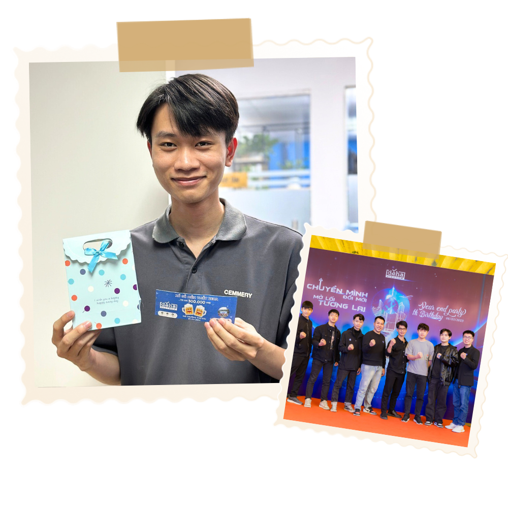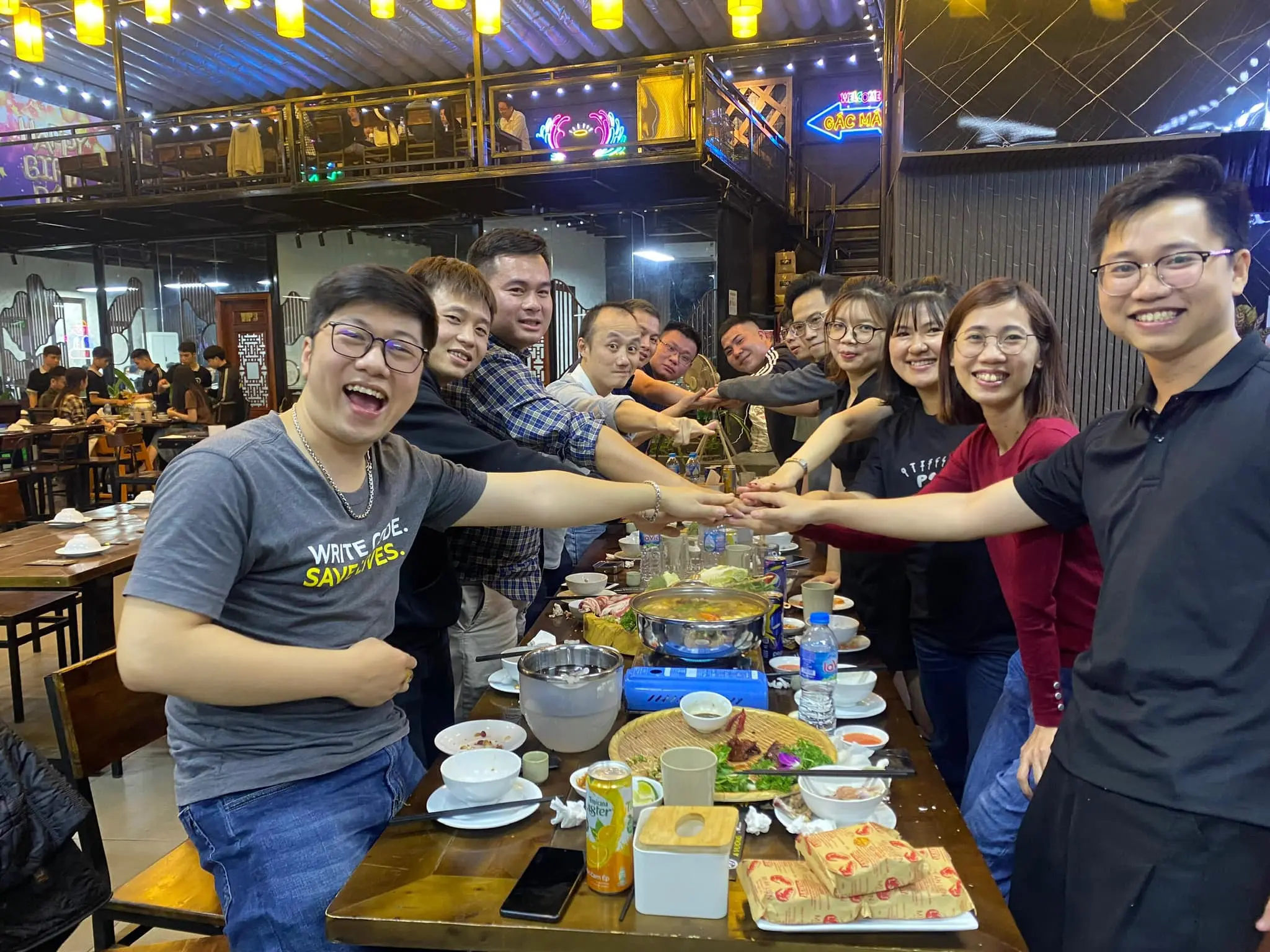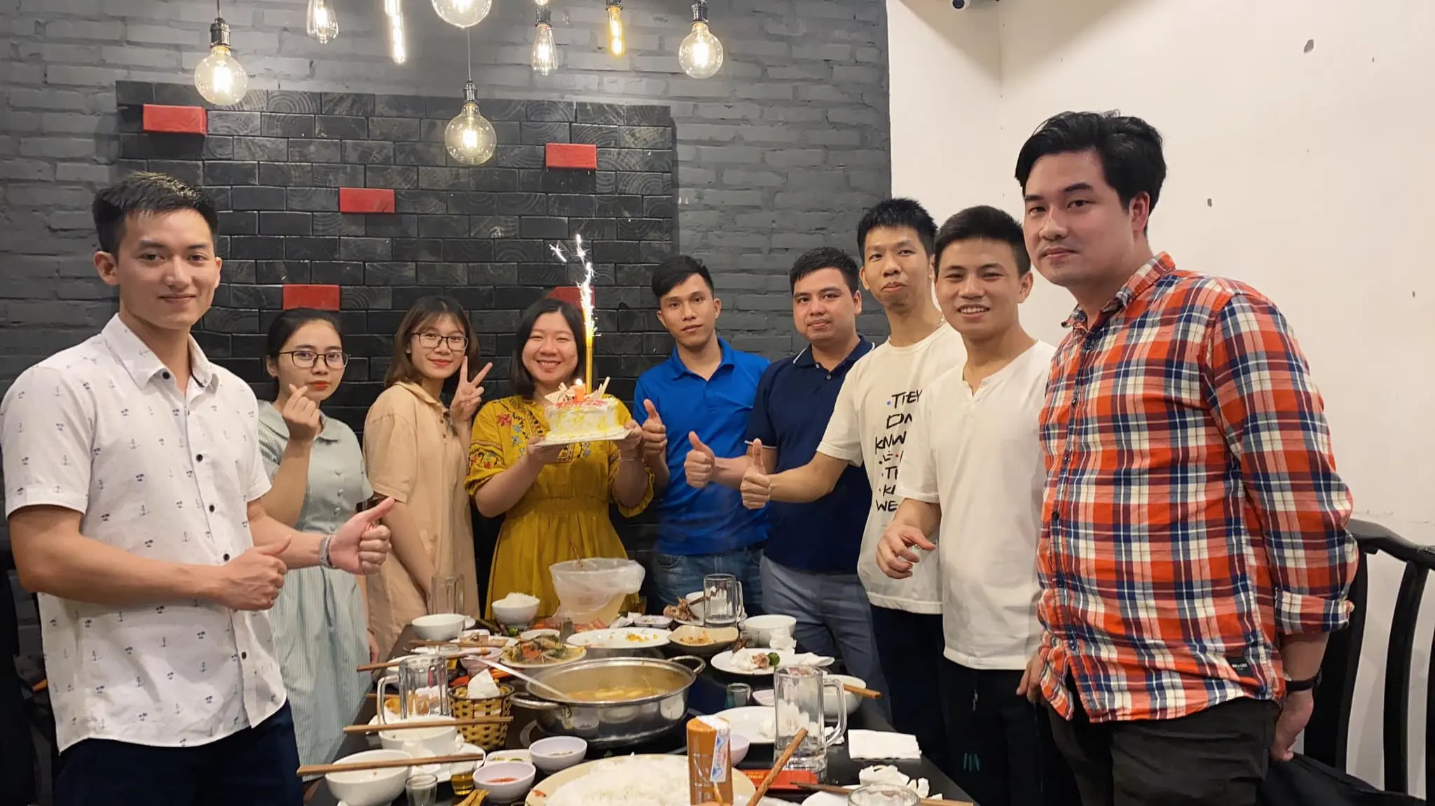 Kỷ niệm mà mình ấn tượng sâu sắc nhất có lẽ là vào đợt dự án gấp cuối năm ngoái. Dù phải đối mặt với áp lực thời gian và những bài toán kỹ thuật khó, nhưng cả team đã cùng nhau đoàn kết, hỗ trợ nhau hết mình, người biết nhiều chỉ người biết ít, cuối ngày còn xuống lục mì tôm trong bếp ăn chống đói, có hôm còn ăn trúng gói mì hết hạn. Chính những lúc như vậy mình mới cảm nhận được rõ nhất tinh thần đồng đội và sự gắn kết của mọi người ở đây. Khoảnh khắc dự án thành công và mọi người cùng nhau ăn mừng thực sự rất đáng nhớ.