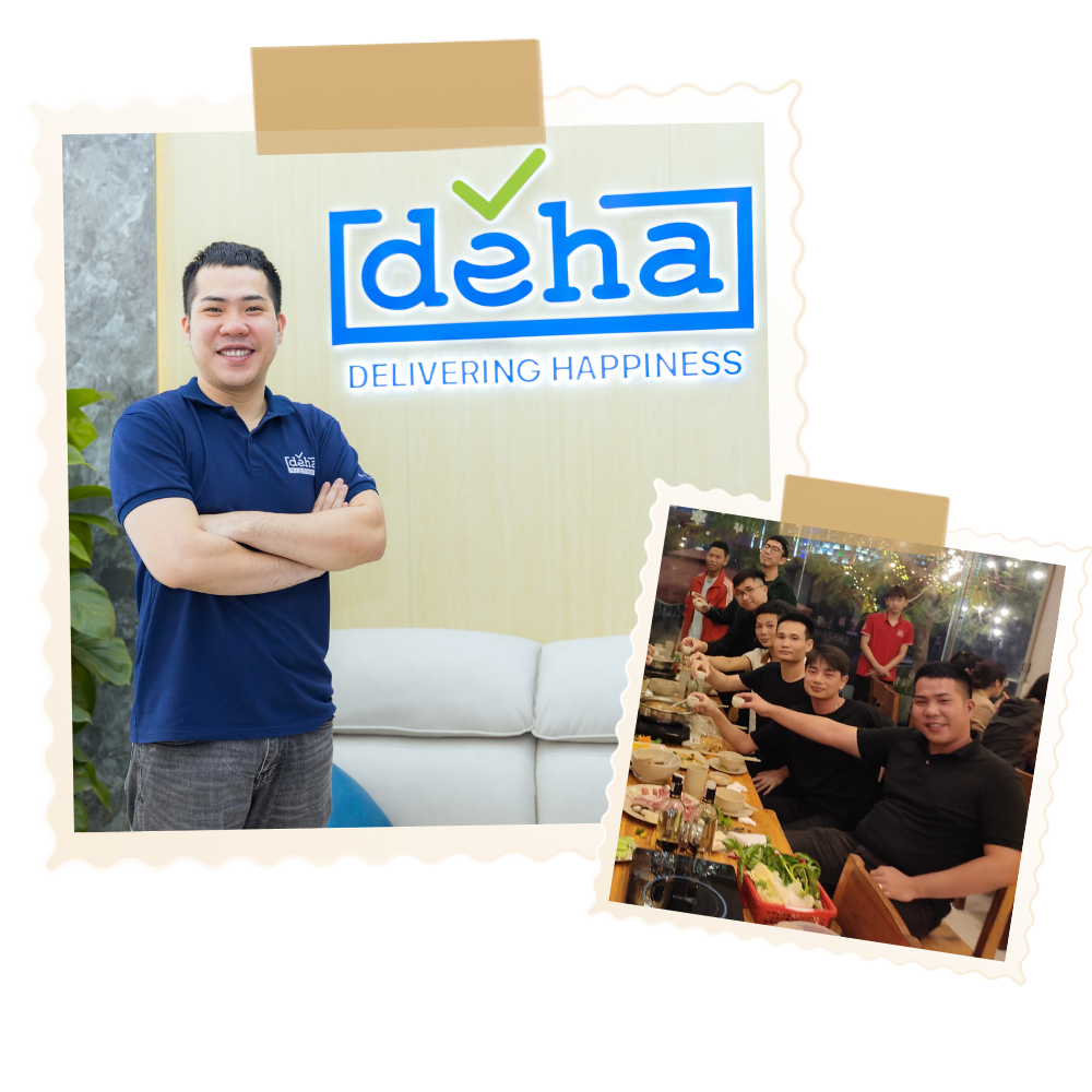 Tôi làm việc tại DEHA từ khi còn là một cậu bé thực tập sinh, sau gần 10 năm thì giờ đã là quản lý cấp trung. Kỷ niệm với DEHA mà tôi nhớ nhất đó là vào năm 2018, làm một dự án phải OT liên tục 2 tháng. Tôi làm ngày đêm không biết mệt mỏi nhưng có anh ChungNV, anh MA và anh em trong team luôn đồng hành cùng. Tôi cảm thấy “không một ai bị bỏ lại phía sau”. Với tôi thì phải OT thì mới có kỷ niệm và mới “lớn” nhanh được!